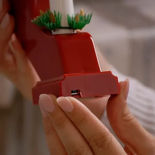 With a modern update of a traditional Christmas decoration comes this red LED Christmas candle bridge with 7 LED candles. Displayed in your window or on your fireplace, this battery operated candle bridge will bring a vintage style to your Christmas display. Constructed from durable plastic with it features 7 candles with warm white LED lights and can be operated with a built-in 6-hour timer. Requires 3x AA batteries (not included).
