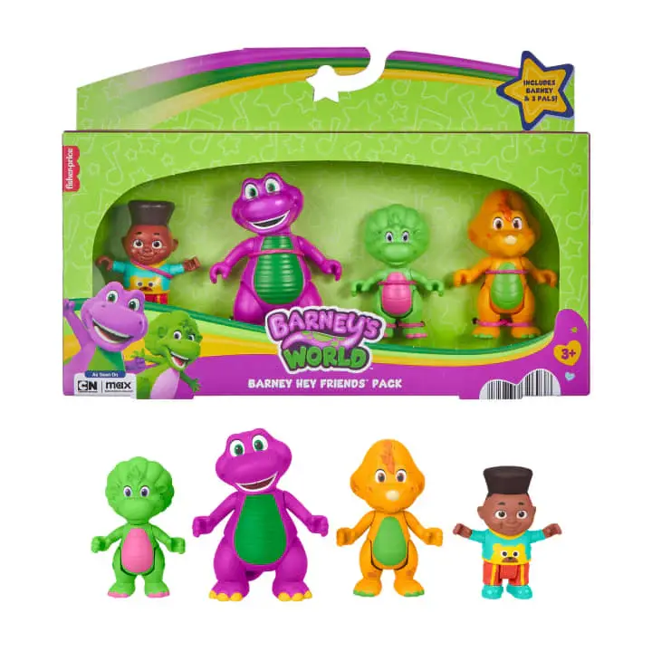 Recreate the fun and adventure of the Barney's World animated series with this Barney Hey Friends Pack from Fisher-Price, a set of 4 poseable figures, including Barney, Baby Bop, Billy, and David!