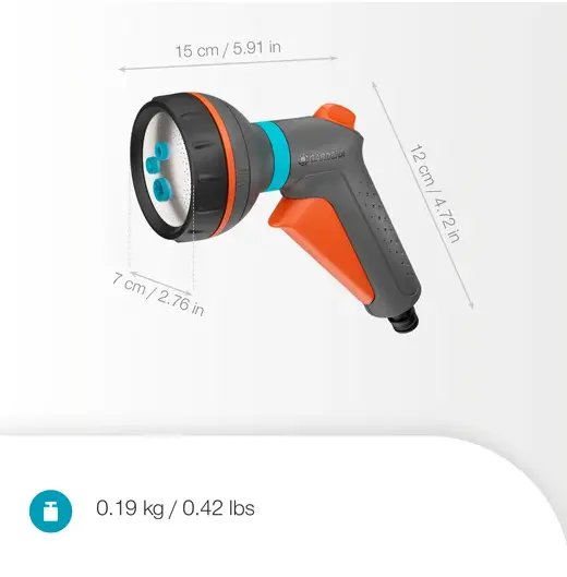 The spray gun features five versatile spray patterns, including cone for gentle watering, jet for cleaning, fan for broader coverage, fine rose for delicate plants, and fast fill for quickly filling watering cans or buckets. This makes it suitable for a wide range of tasks around the garden.