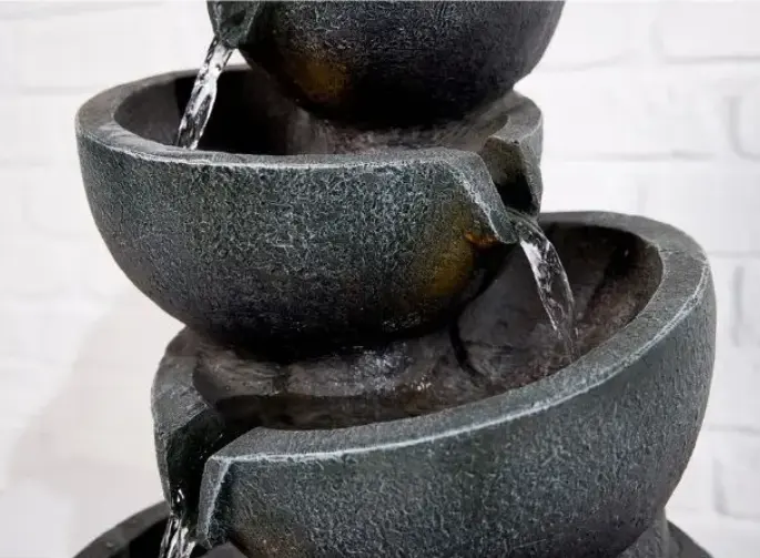 The feature is fully self-contained, meaning there’s no need for a permanent water supply—simply fill, plug in and enjoy. The steady cascade of water creates a calming, tranquil atmosphere, turning any outdoor area into a relaxing retreat.