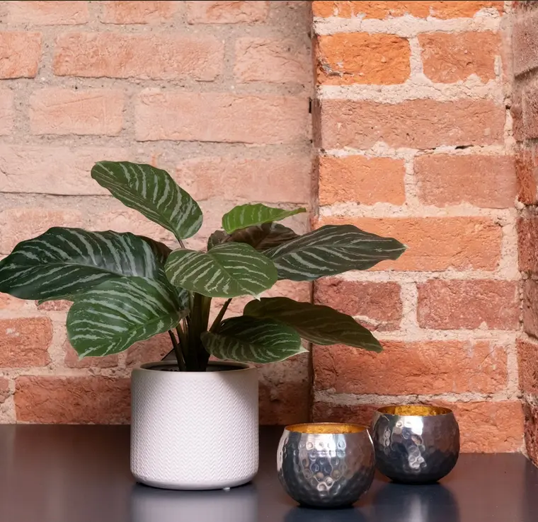 Expertly crafted for a realistic finish, this artificial plant offers all the beauty of a real calathea without the upkeep—no watering, no fuss, just long-lasting style. Real calatheas are known for their decorative, striped foliage, making this faux version a practical way to enjoy the same look with eas
