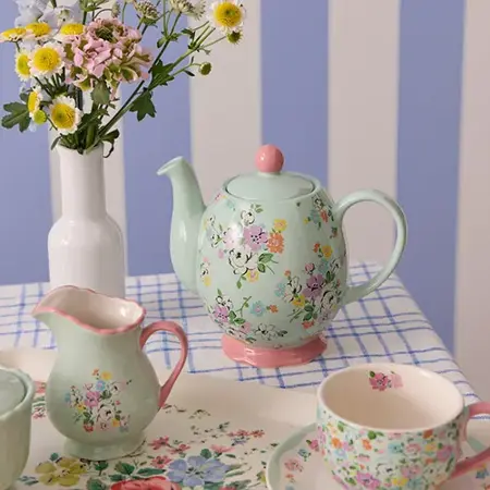 Enjoy an afternoon cuppa from this perfectly proportioned Cath Kidston Feels Like Home Teapot. Crafted from durable stoneware, this delightful teapot is finished in a soothing sage with a pastel pink base and knob on the lid.