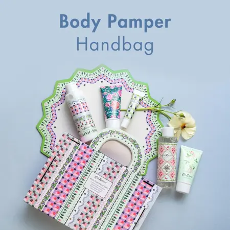 Our latest handbag holds five fig scented body care treats of glycerin rich body wash, shea butter body lotion, two shea butter hand creams and spearmint flavour lip balm. A perfect Cath Kidston beauty gift for her
