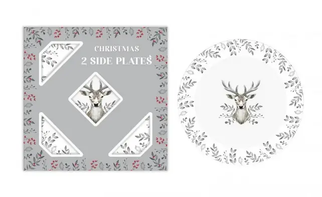 This set of two beautifully designed side plates features a detailed stag motif, combining seasonal charm with practical functionality for your Christmas meals.