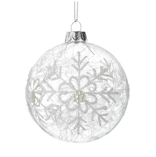 1 x CLEAR GLASS BABULE WITH SNOWFLAKE PEARLS