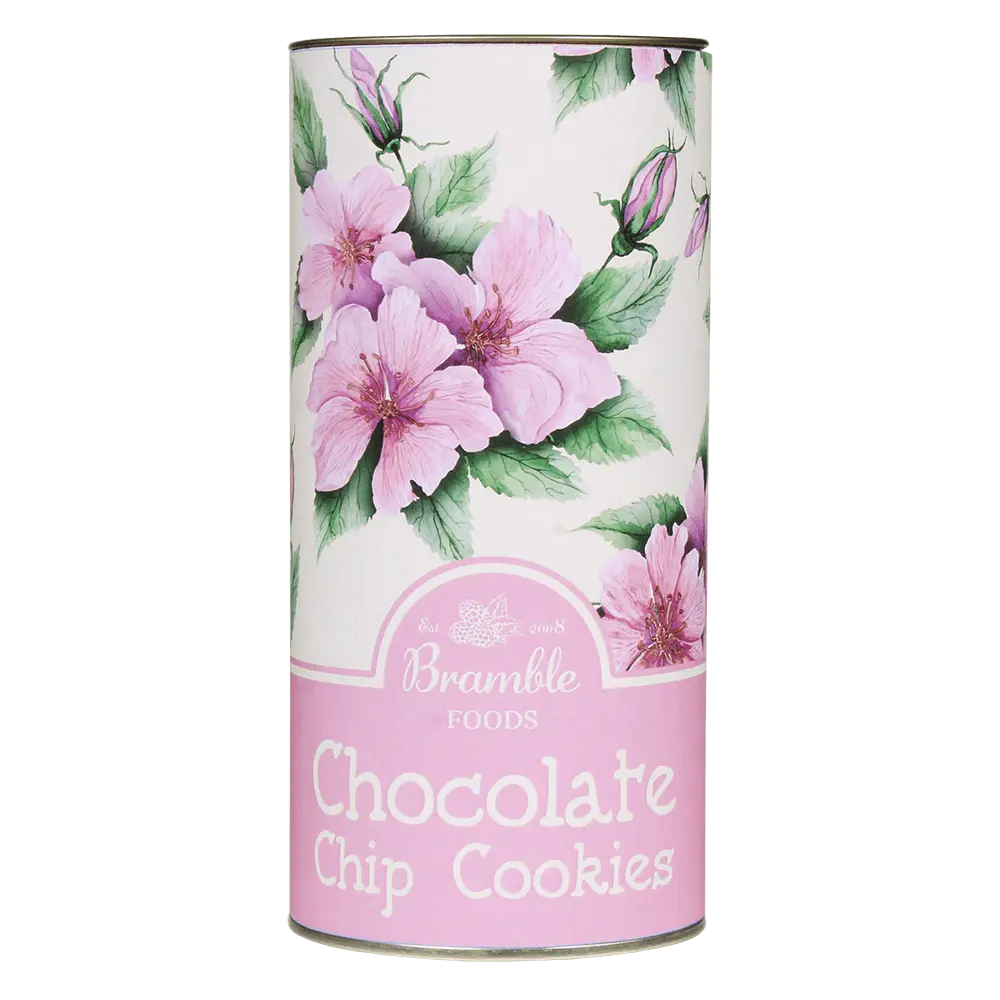 A delightful selection of crumbly chocolate chip cookies, presented in a beautifully decorated dog rose gift drum. Each biscuit is packed with rich dark chocolate chips and baked to a golden finish for a perfectly sweet, indulgent treat.