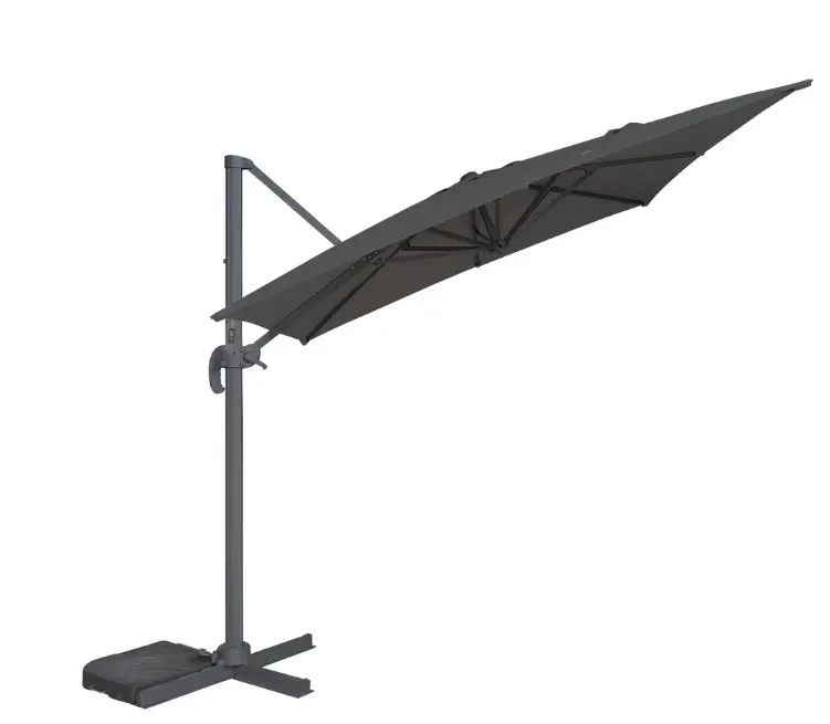 - Cantilever design – provides shade without a central pole