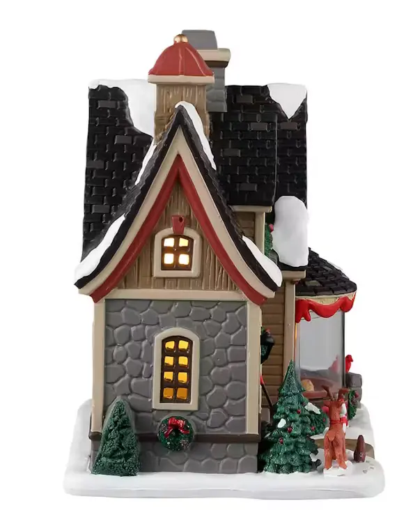 Surrounded by snow and wildlife outside this adorable house is decked out for the holidays while the couple inside takes a much needed break by the fire. Candy canes, wreaths, and greenery decorate the exterior and a snow shovel leans against the side so it is apparent that company is expected. Perhaps they are waiting for friends to drop by or for Santa to drop down the chimney?