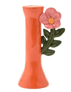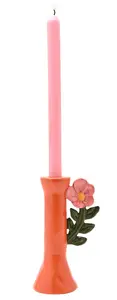 The Hestia Orange Flower Candle Holder is a charming ceramic piece that adds unique and colourful charm to any home. With its eye-catching orange and pink stylised flower design, this piece is sure to capture attention.