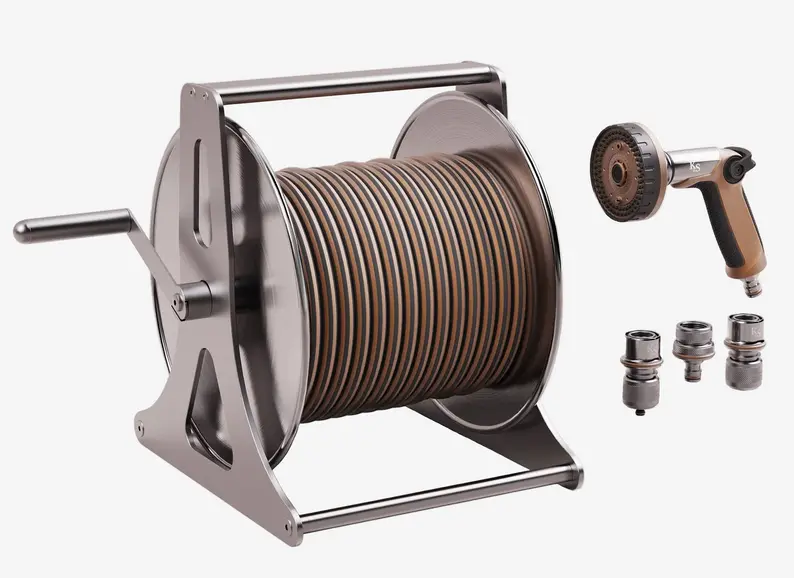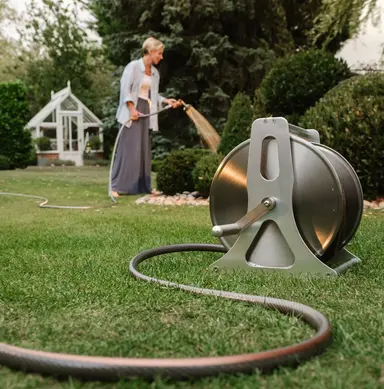 Its versatile design means it can be used either freestanding or mounted to a wall, giving you flexibility to suit your garden layout. Combined with its rust-resistant construction, this reel is built to withstand the elements and deliver reliable performance season after season.