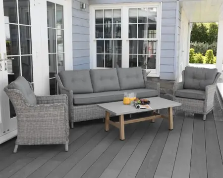 Supremo’s Lagos collection is a wonderful collection of synthetic rattan weave garden furniture enhanced with some sleek, modern detailing. This premium garden furniture collection is all-new from Supremo for 2025. This set includes two comfortable Lagos armchairs and a three-seat Lagos garden sofa. A low coffee table completes the set, making this a great option for relaxed garden entertaining. We think Lagos works equally well in modern and traditional garden schemes.