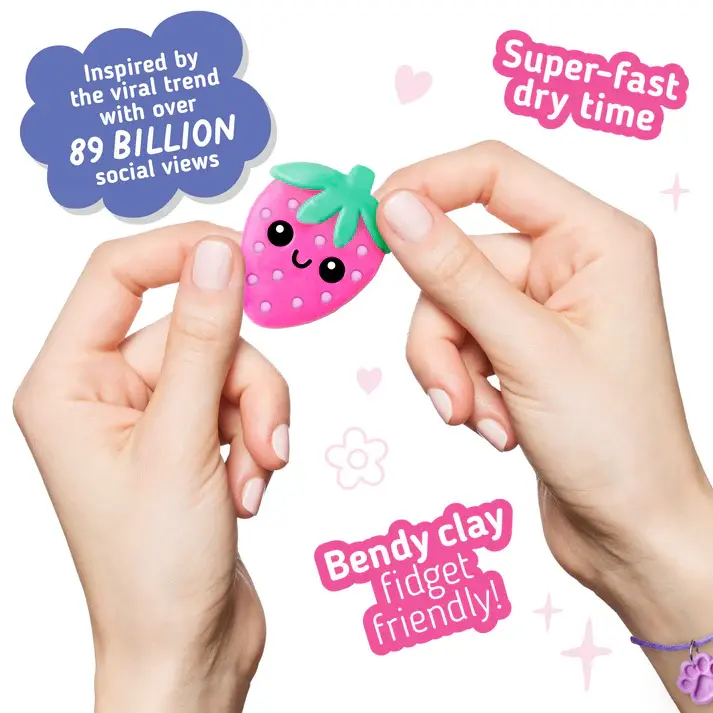 Make trendy bag charms, bracelets, and badges using soft, fast-drying, fidget-friendly clay inspired by the viral clay charm trend.