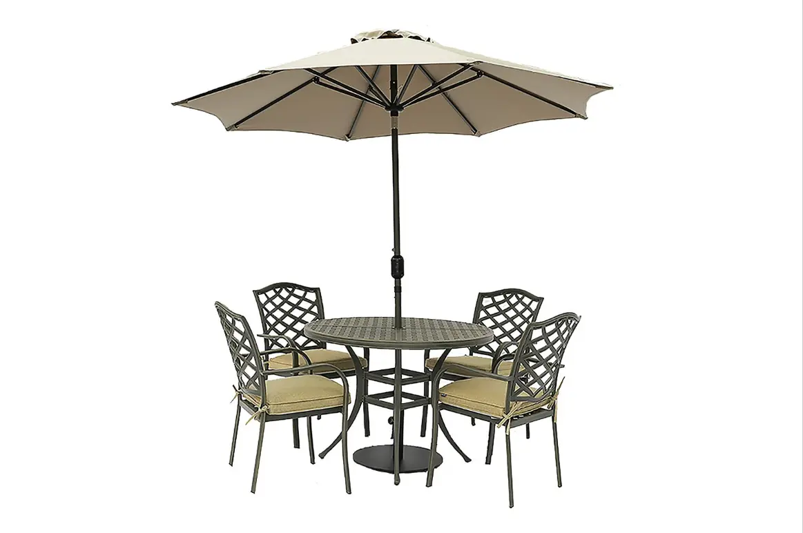 Alfresco dining couldn’t be more stylish with the smooth contemporary lattice of the Oakley range. Crafted from cast aluminium this furniture is durable, attractive and has great strength and value at its heart. The table and chairs can be left in the garden looking beautiful all year long, whilst our permeable Weatherready® cushions can be left outside in summer months - allowing you to make the most of the season.