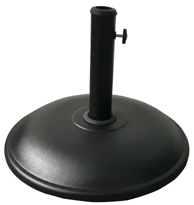 With its neat black finish and compact design, it sits comfortably under most garden tables or on the patio without getting in the way. The sturdy concrete weight helps keep your parasol in place, while the steel tube and tightening screw hold the pole securely.