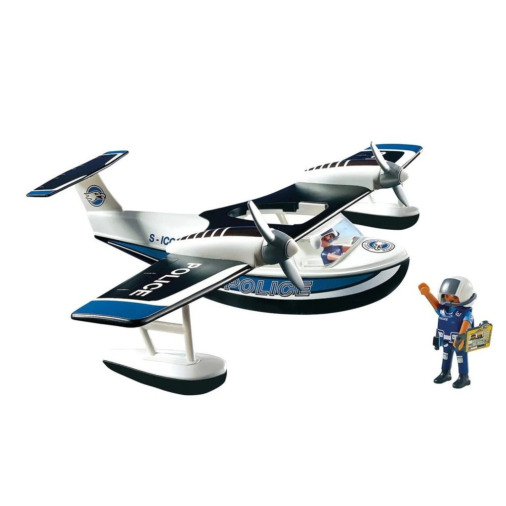 Soar into action with the Playmobil Police Seaplane 4445! This adventurous set features a floating design, rotating propellers, and an exciting water-dropping function, perfect for young heroes ready to tackle thrilling rescue missions! Discover ultimate construction fun with the PLAYMOBIL Police Seaplane set. This unique set features plenty of space for the pilot and a passenger to fit inside. It has functional propellers, and the wingspan is approximately 40cm. This fun set also comes with 2 PLAYMOBIL figures for added fun.