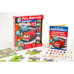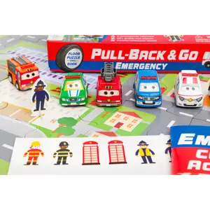 First, piece together the town-centre jigsaw to create a big 42 x 61 cm (16.5 x 24 in) playmat. Then, get out your 6 cars, set them up on the mat, pull them back and watch them go!