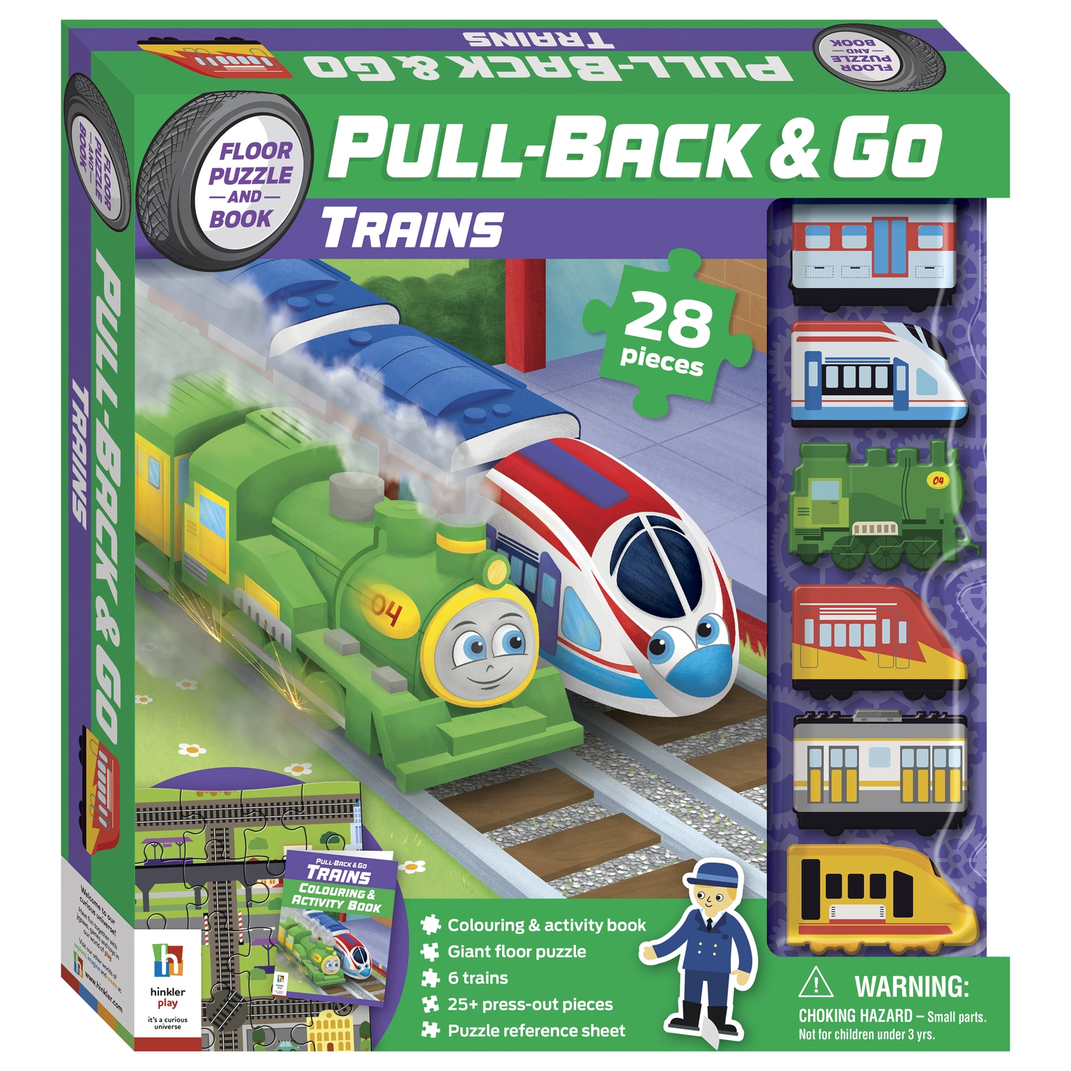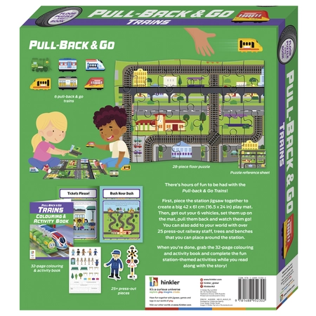 Add to the world with over 25 press-out characters, luggage and train benches that you can place around the station. After the playing has finished, grab the 32-page colouring and activity book and complete the fun train themed activities while reading along with the story!