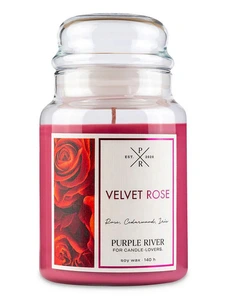 Rose, Cedarwood & Iris. A must-have for any home. Purple River 623g large jars provides up to 140 hours of clean and safe burn time. Made with premium materials, including a hand-blown jar, 100% soy wax, premium cotton wick, and exclusive fragrance oils from Germany, this candle ensures high quality and safety standards.