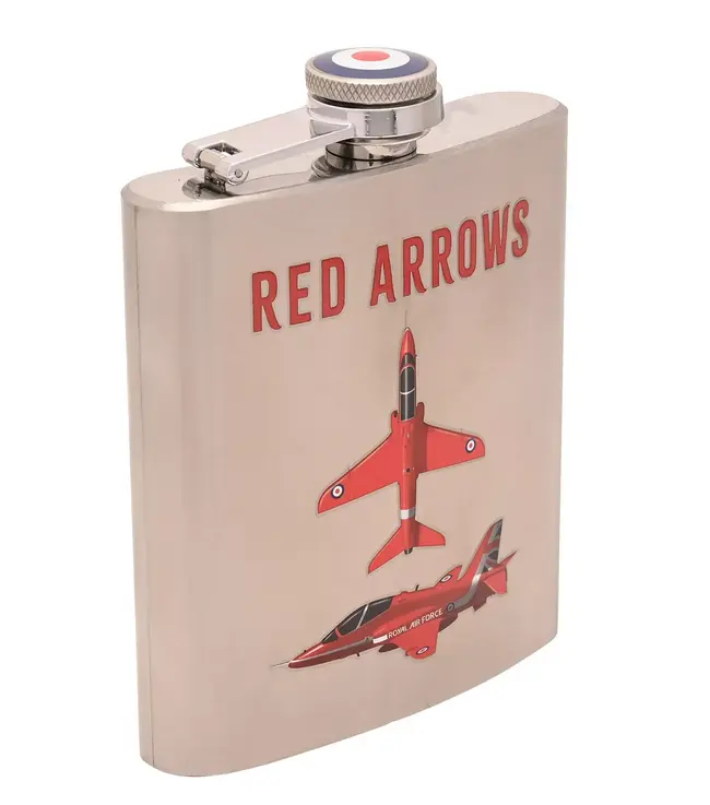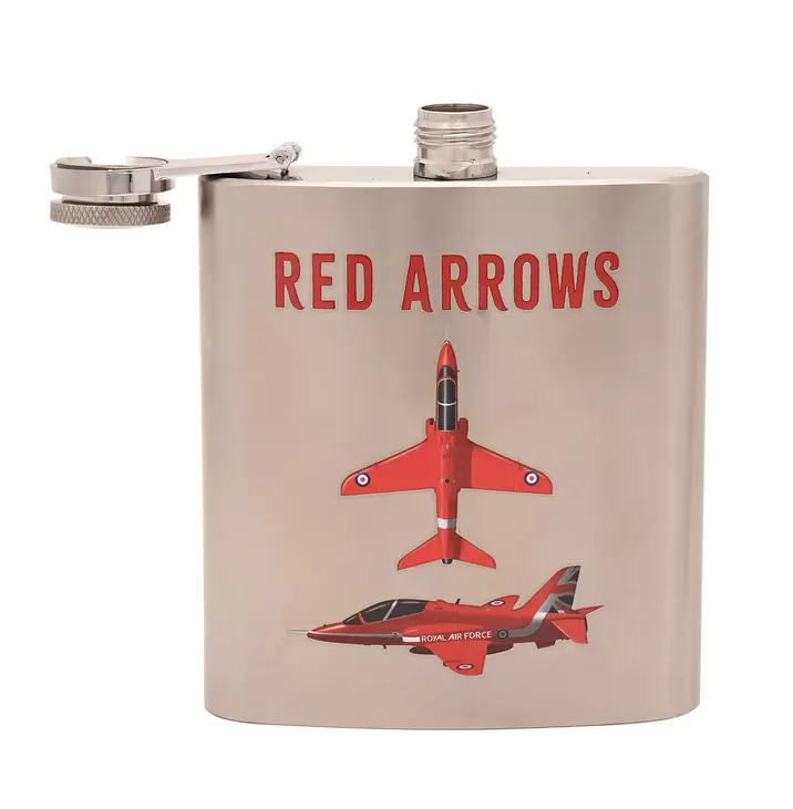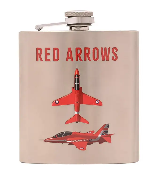 RAF Hip Flask - 6oz silver hip flask with Red Arrows pictures on the front. This is a great gift to mark any special occasion or to treat the RAF or aviation fan in your life. The hip flask comes complete in a gift box.