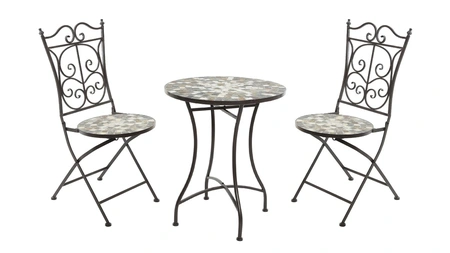 Relax in style and comfort with the Kaemingk Siena Bistro Set, ideal for any space. Featuring two folding chairs and a matching side table, this set is perfect for enjoying a drink or a good book under the sun. The mosaic seat and table top design add a touch of elegance to your outdoor space.