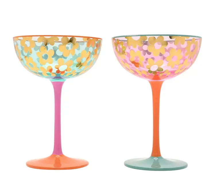 Each glass features vibrant floral patterns set, blending playful design with elegant vintage charm. Presented in gift-ready packaging, this set is perfect for celebrating in style and makes an easy pick-up for special occasions.