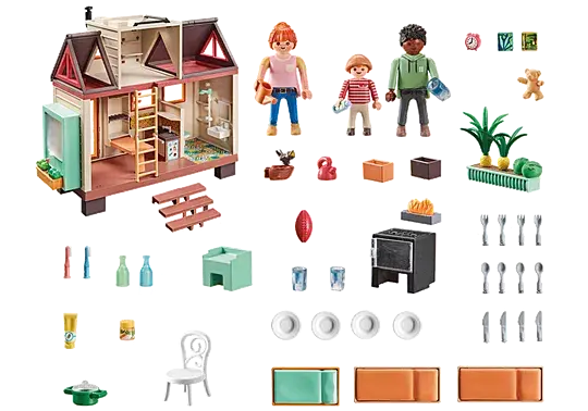 Includes 160 pieces in a large (L) pack – PLAYMOBIL Tiny House with 2 floors, cozy kitchen-living area, and self-sufficient garden beds