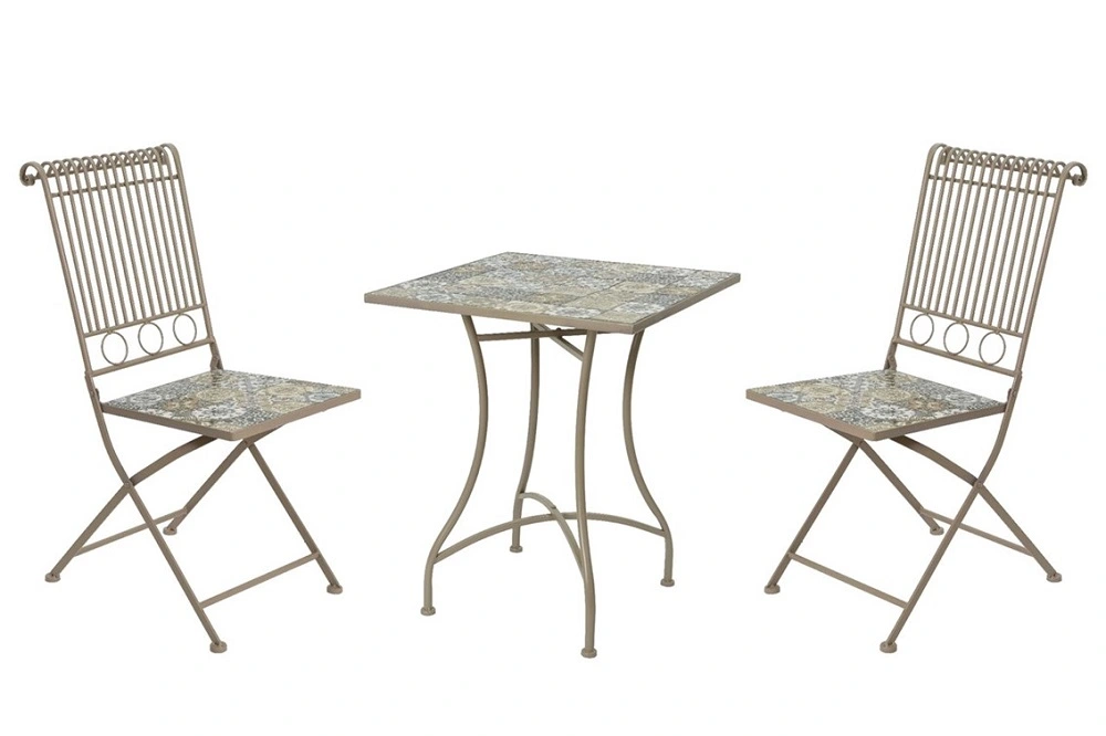 Relax in style and comfort with the Kaemingk Toulouse Bistro Set, ideal for outdoor leisure. Featuring two folding chairs and a matching side table, this set is perfect for enjoying a drink or a good book under the sun. The mosaic seat and table top design add a touch of elegance to your outdoor space.