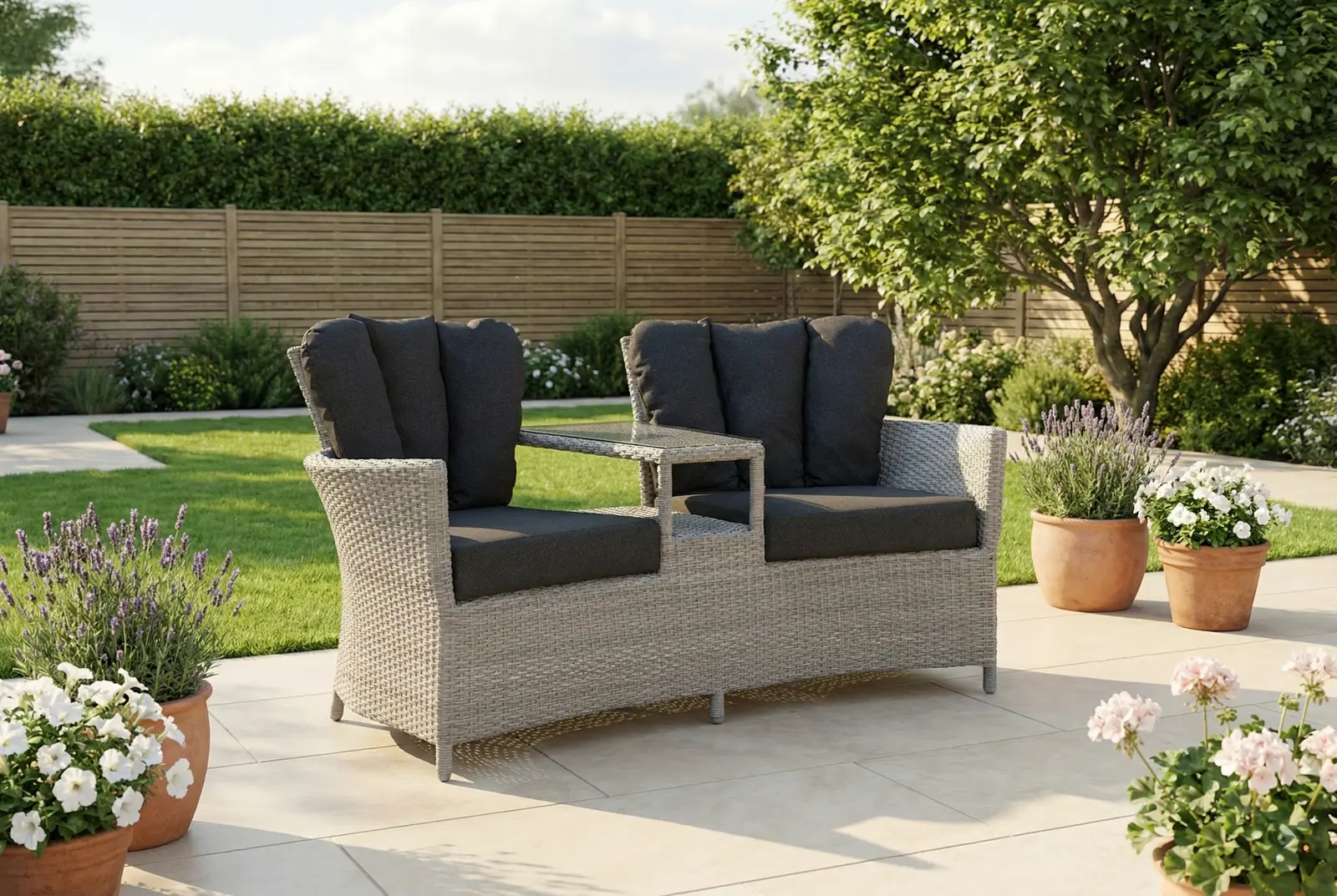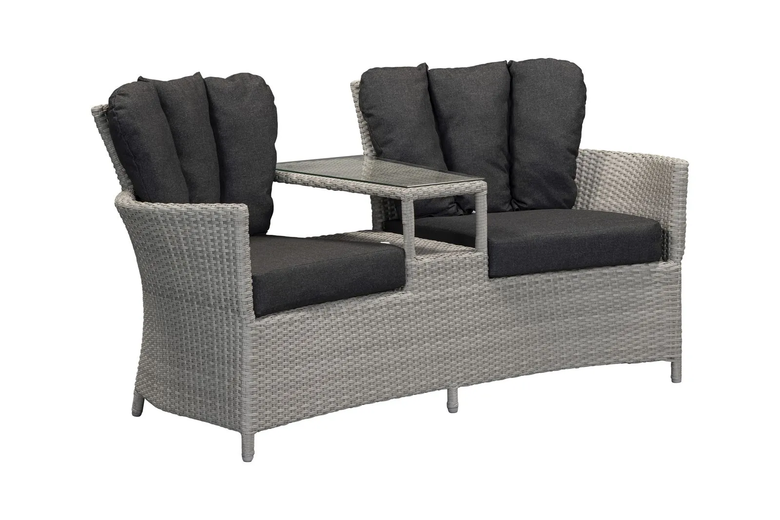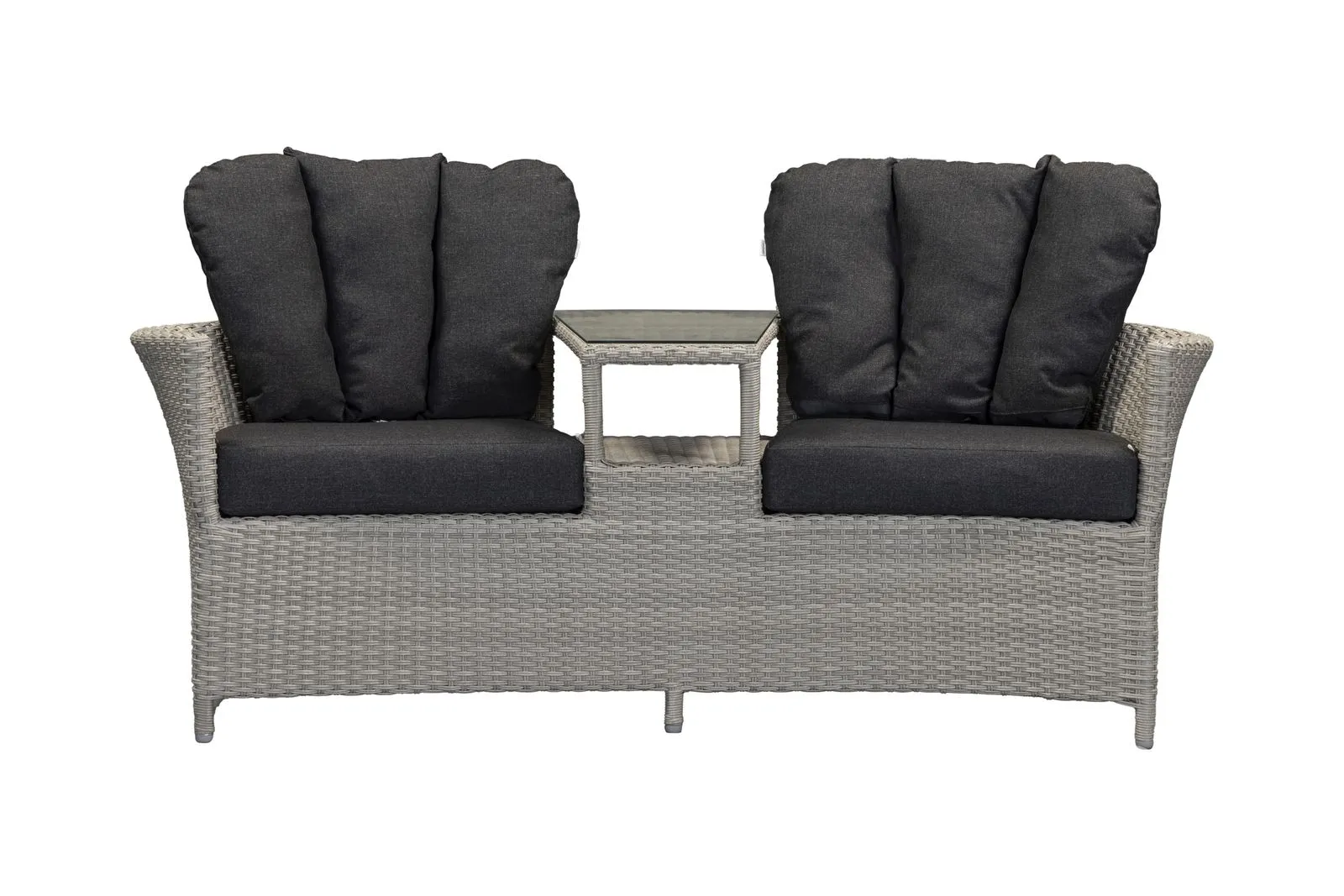 Constructed from a durable, UV-resistant weave with a lightweight powder-coated aluminium frame, the Venice Love Seat is designed for outdoor living. Cushions are shower-resistant and should be stored indoors during prolonged wet weather to maintain their condition.