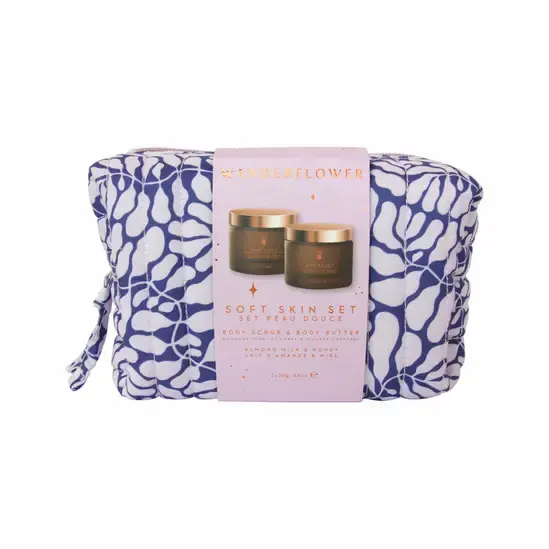 Indulge in the perfect duo for silky-soft, radiant skin with the Soft Skin Set. This luxurious pairing includes an Almond Milk & Honey Body Scrub and a matching Body Butter, beautifully presented in a printed zip pouch that’s perfect for gifting or travel. The body scrub gently exfoliates, removing dead skin cells to reveal a smoother, brighter complexion. Follow with the nourishing body butter, which deeply hydrates and locks in moisture, leaving your skin soft, refreshed, and glowing. Together, they create the ultimate pampering routine for beautifully cared-for skin.