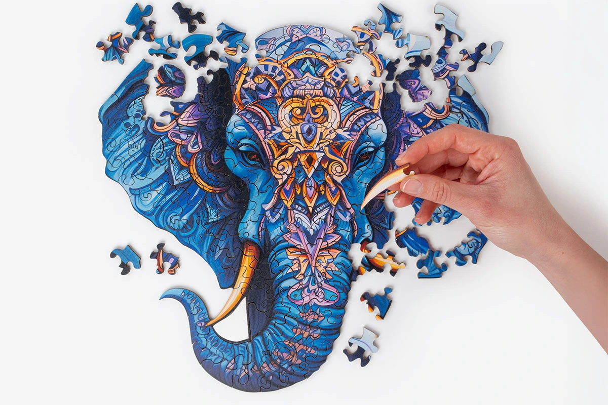 Piece together the gentle giant of the wild. This 174-piece wooden elephant puzzle bursts with detail and character, celebrating the strength, wisdom, and beauty of nature’s most majestic creature.